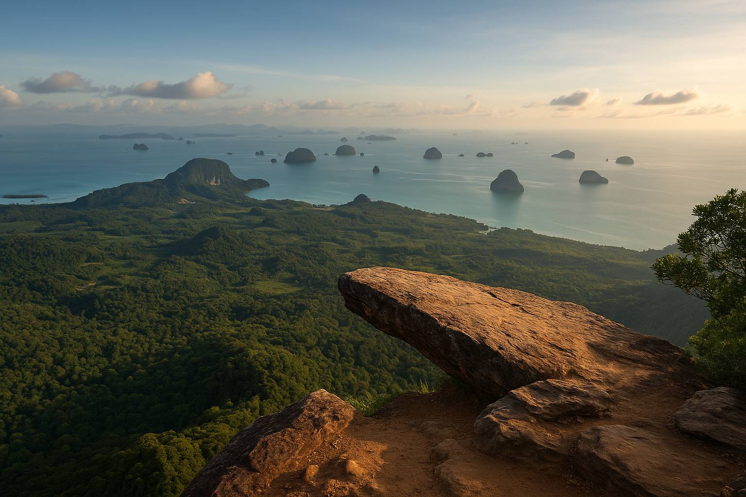 From the summit, you'll witness an endless sea of emerald islands floating beneath a sky that shifts in color from pastel pinks to deep indigos at sunset. It's one of the most Instagrammable spots in Thailand.